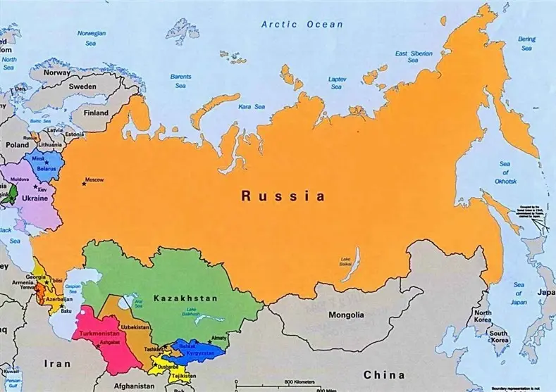 روسیه با بیش از ۱۷ میلیون کیلومتر مربع وسعت، حدود ۱۰ برابر ایران است و به همین دلیل بخشهای وسیعی از آن تقریبا خالی از سکنهاند.