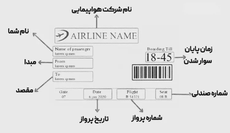 در ادامه، مهمترین بخشهای روی Boarding Pass را به زبان ساده توضیح میدهیم: