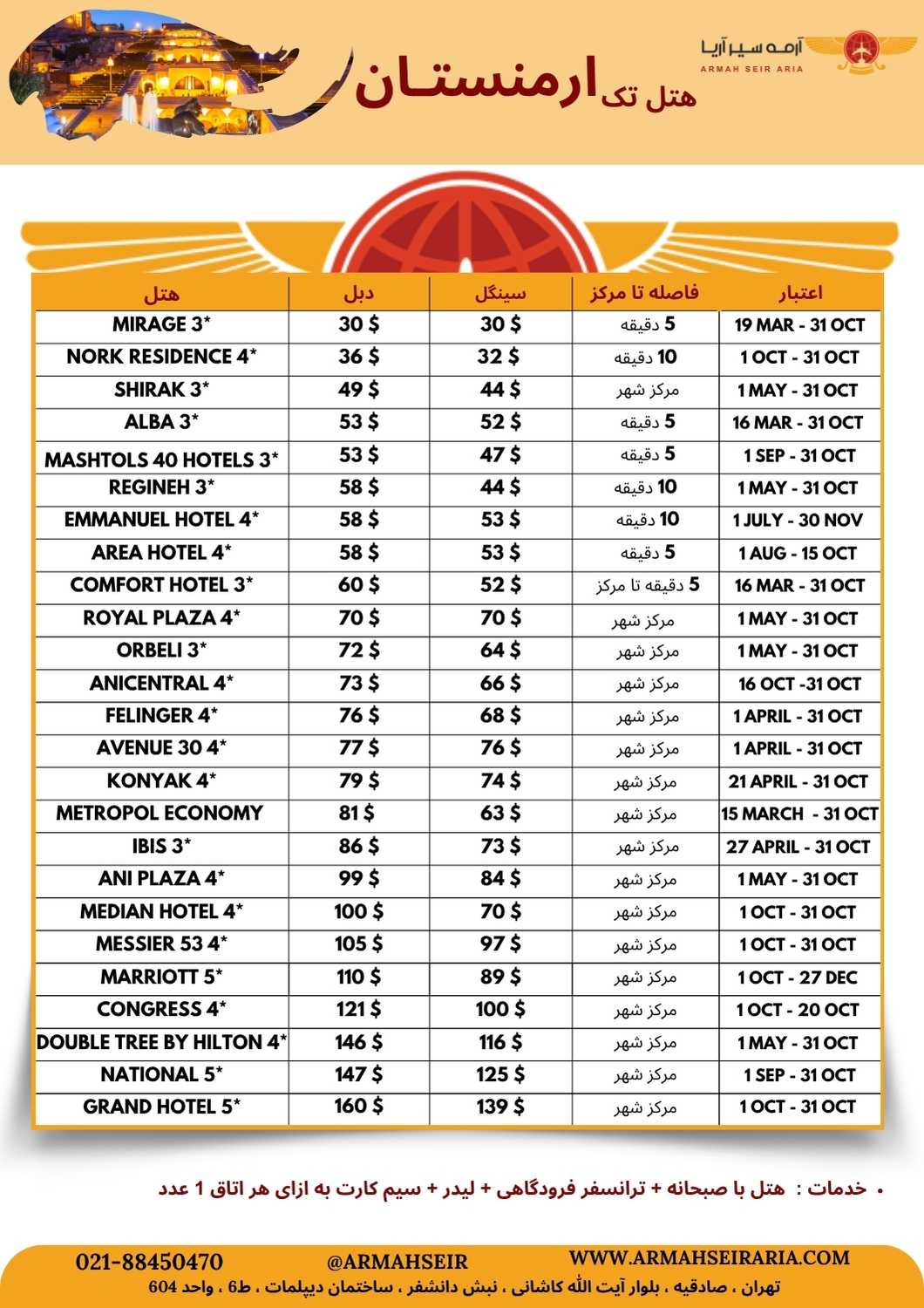 هتل با صبحانه + ترانسفر فرودگاهی + لیدر + سیم کارت به ازای هر اتاق 1 عدد