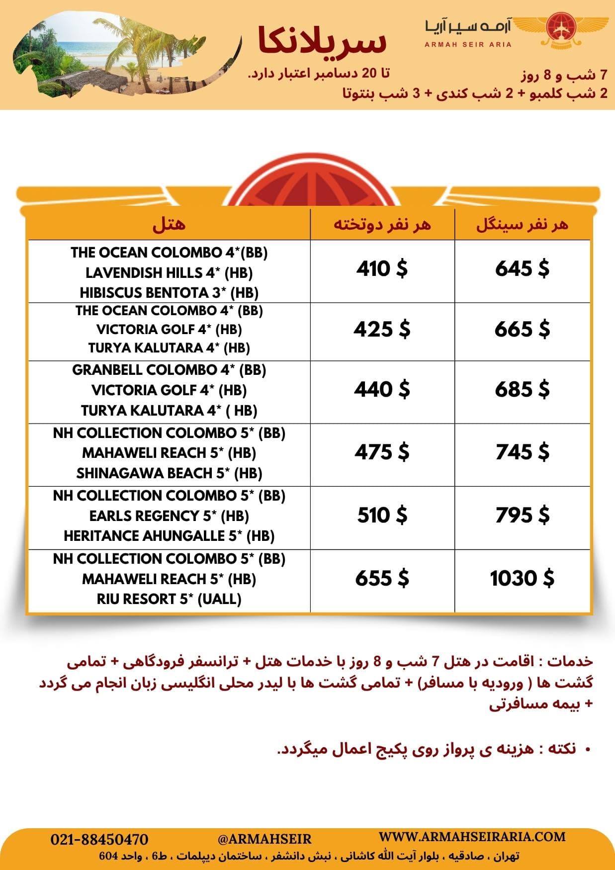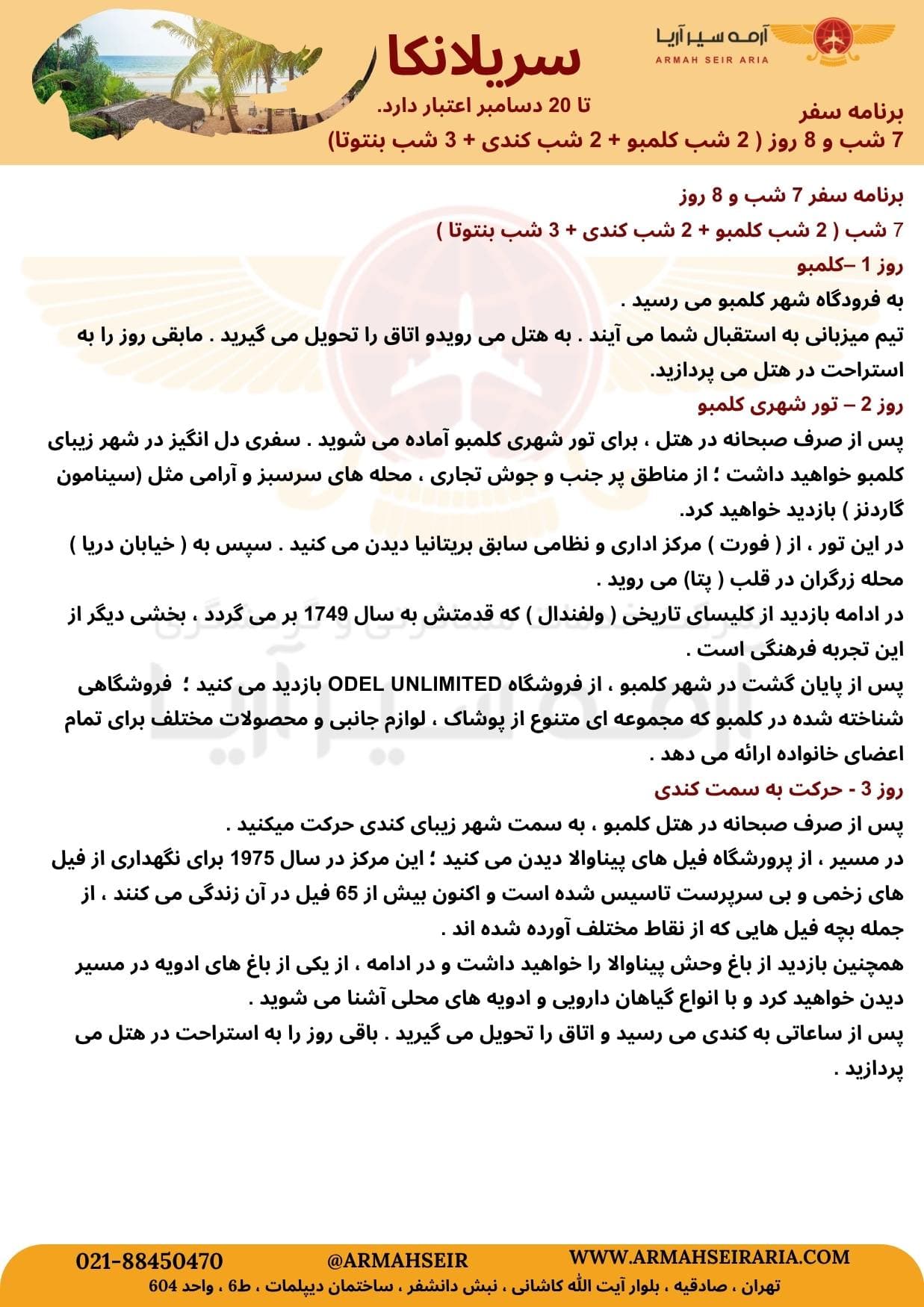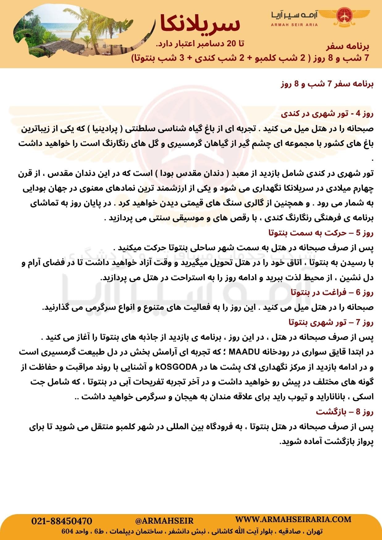 سریلانکا 7 شب کلمبو، کندی، بنتوتا