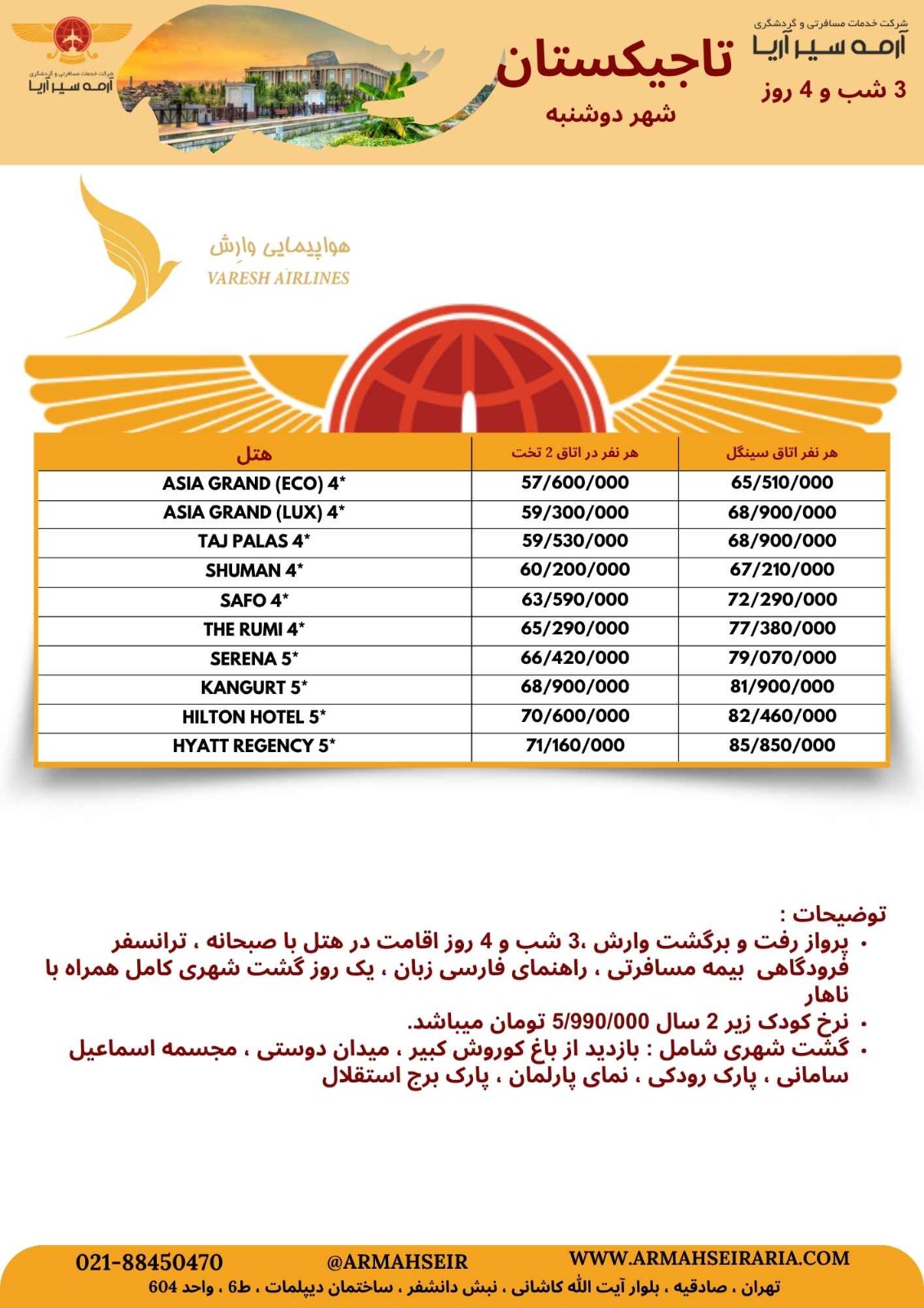 - نرخ کودک زیر 2 سال 5/990/000 تومان میباشد.