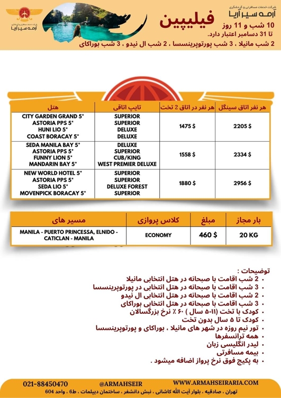 - 2 شب اقامت با صبحانه در هتل انتخابی مانیلا