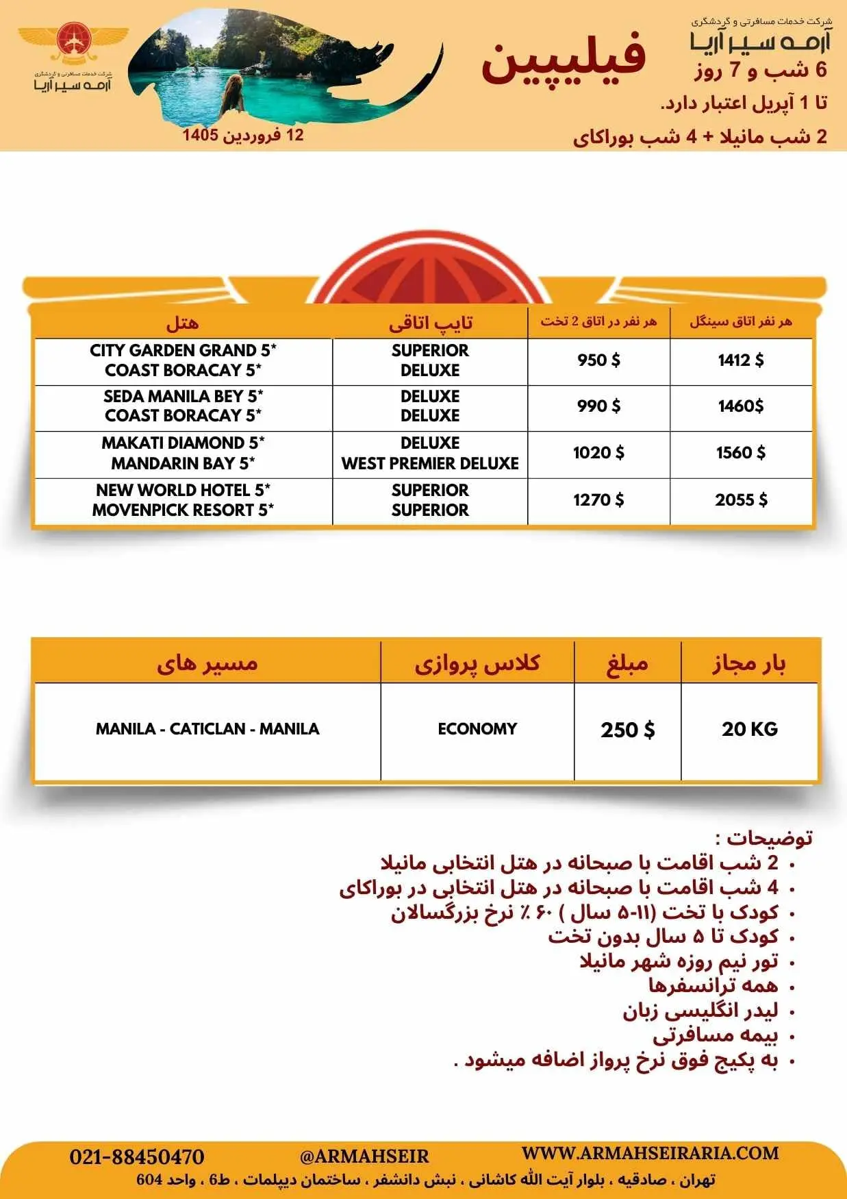 - به پکیج فوق نرخ پرواز اضافه میشود.