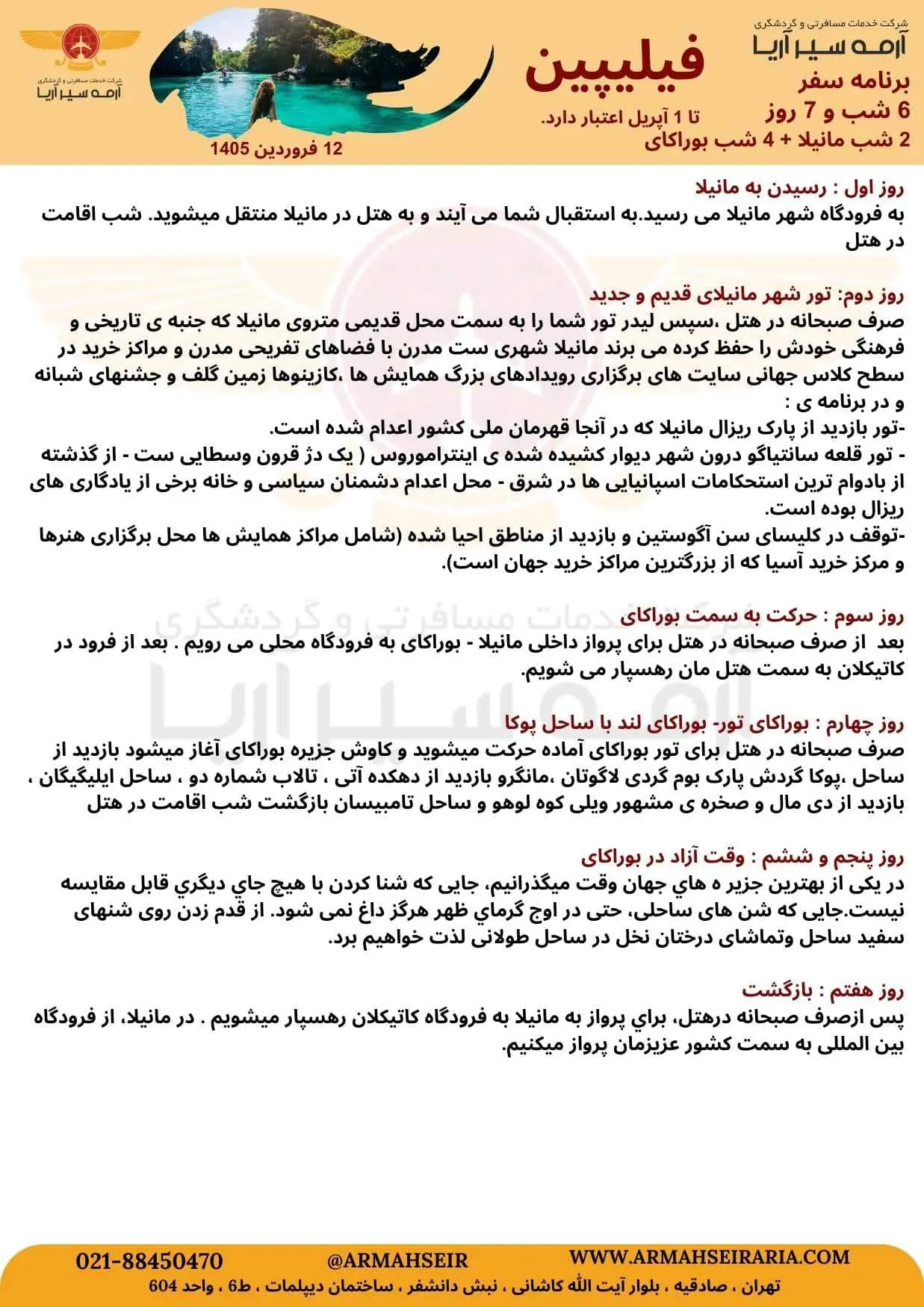 تور فیلیپین 6 شب (2 شب مانیلا + 4 شب بوراکای)