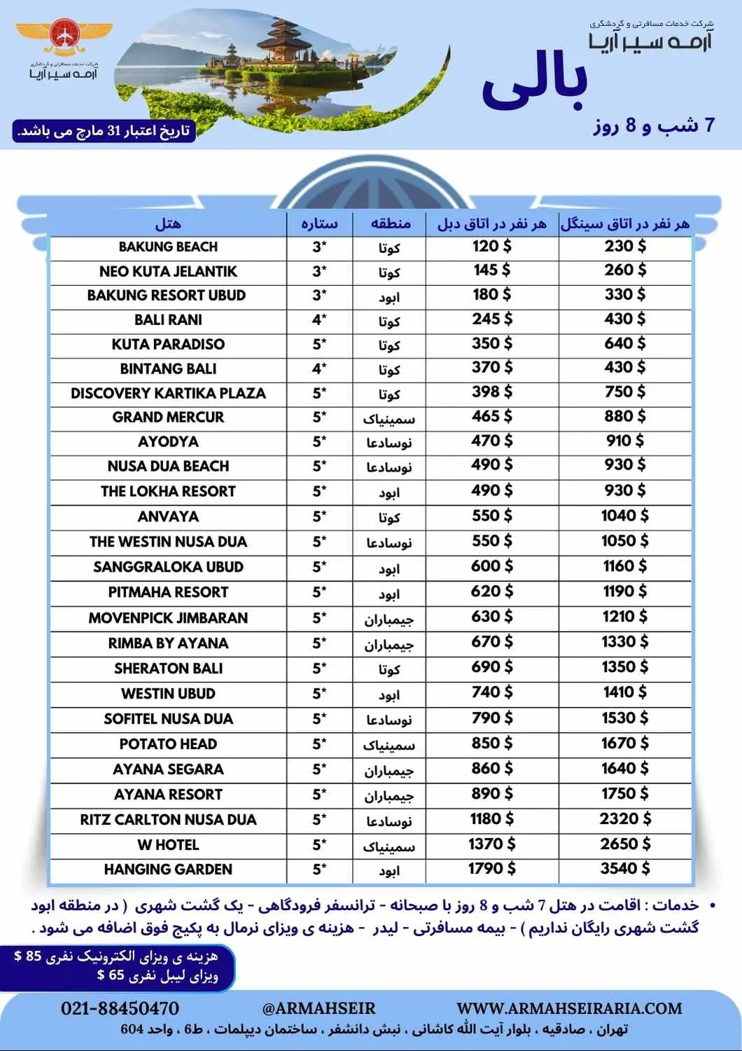 - ویزای نرمال اندونزی روی پکیج 85 دلار می باشد.