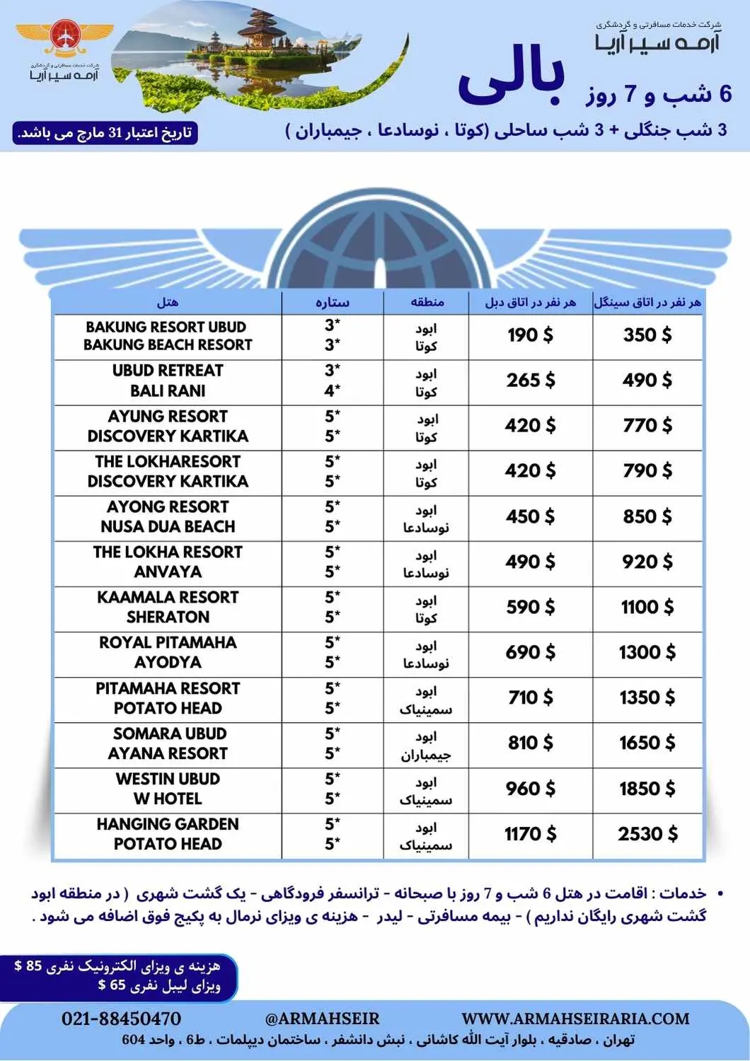 - ویزای نرمال اندونزی روی پکیج 85 دلار می باشد.